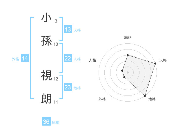 小孫 視朗さんの天格は13画の5点!