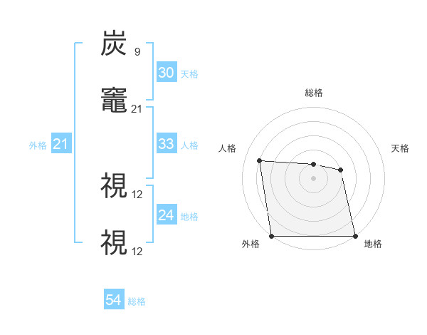 炭竈 視視さんを姓名の画数から五運を鑑定