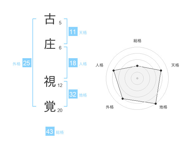 古庄 視覚さんの地格は32画の5点!