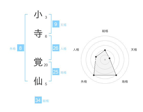 小寺 覚仙さんを姓名の画数から五運を鑑定