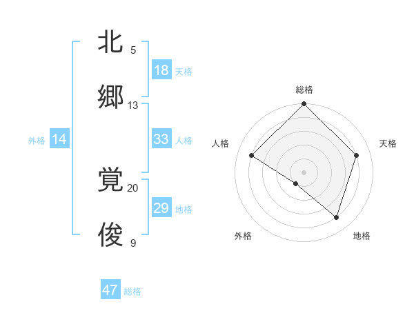 北郷 覚俊さんを姓名の画数から五運を鑑定