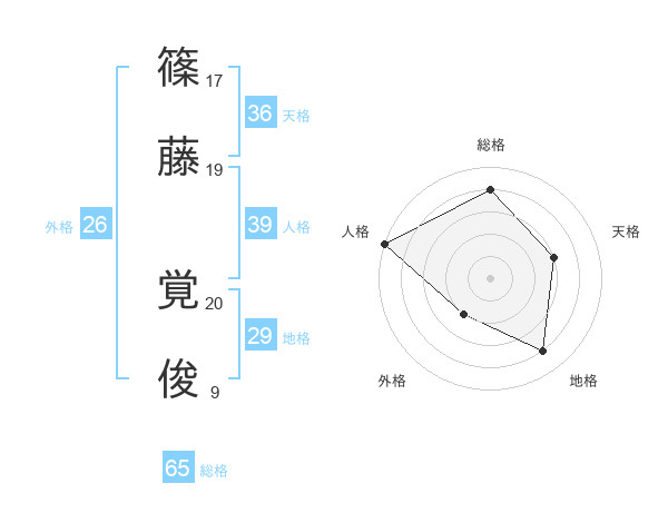 篠藤 覚俊さんを姓名の画数から五運を鑑定
