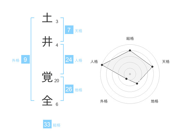 土井 覚全さんの総格は33画の4点!