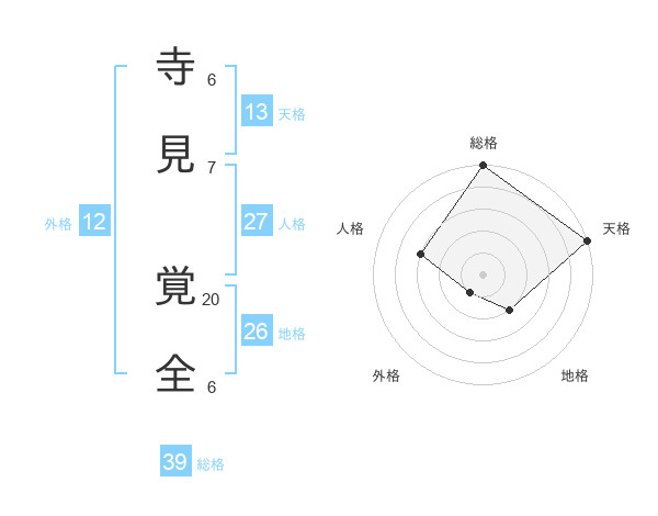 寺見 覚全さんの総格は39画の5点!