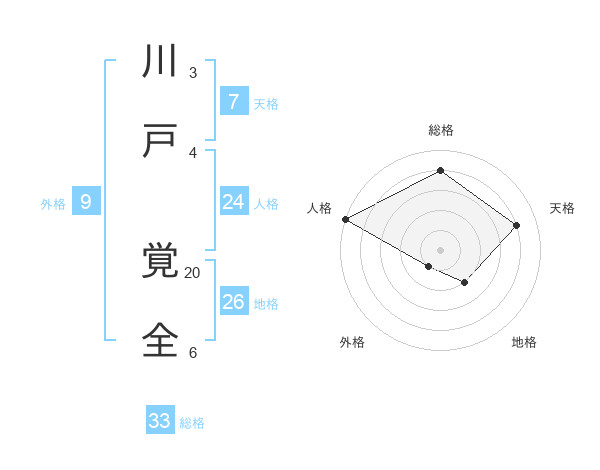 川戸 覚全さんの総格は33画の4点!