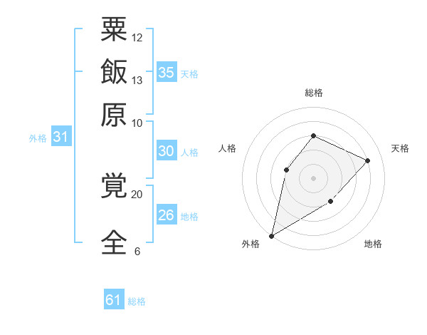 粟飯原 覚全さんの総格は61画の3点!