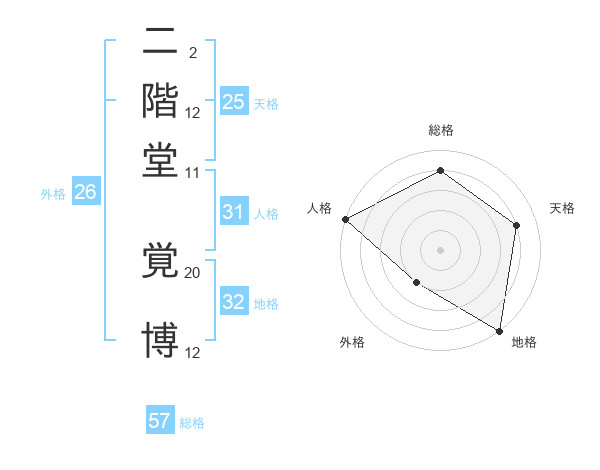 二階堂 覚博さんを姓名の画数から五運を鑑定