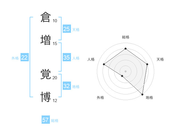 倉増 覚博さんの総格は57画の4点!