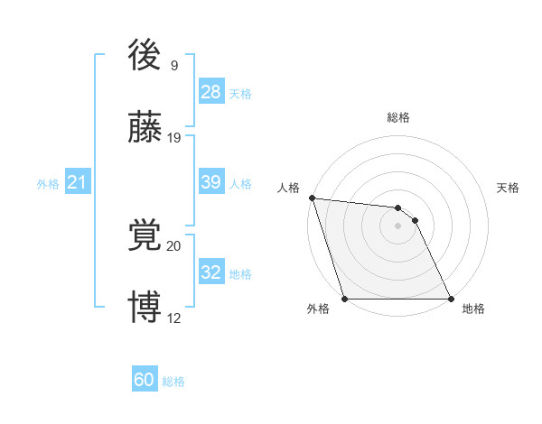 後藤 覚博さんの総格は60画の1点!