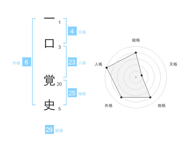 一口 覚史さんの総格は29画の4点!