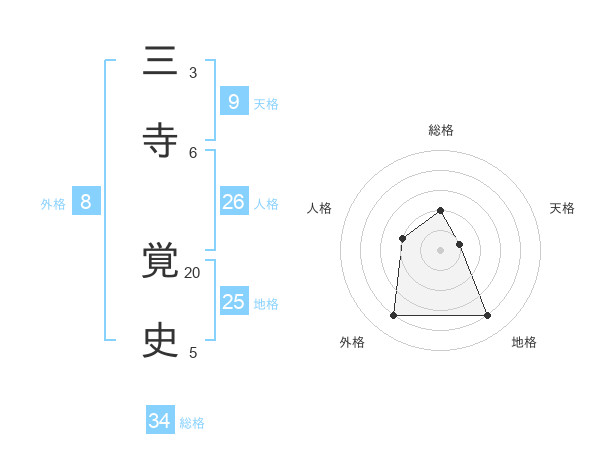 三寺 覚史さんの総格は34画の2点!
