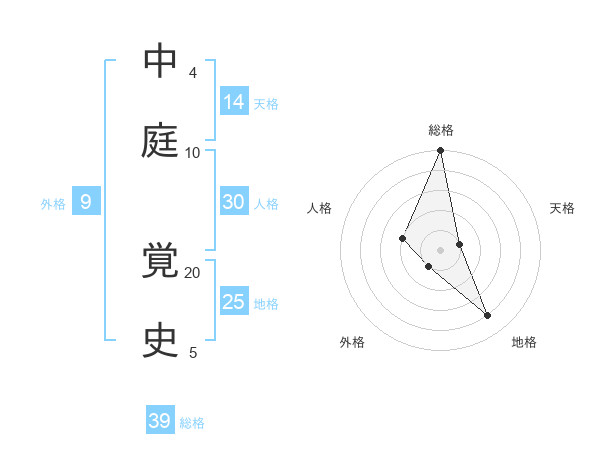 中庭 覚史さんを姓名の画数から五運を鑑定