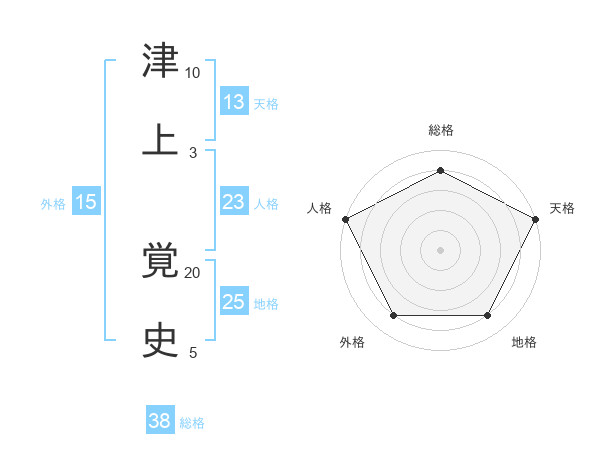 津上 覚史さんの総格は38画の4点!