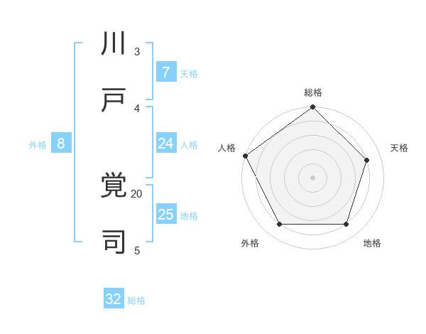 川戸 覚司さんを姓名の画数から五運を鑑定