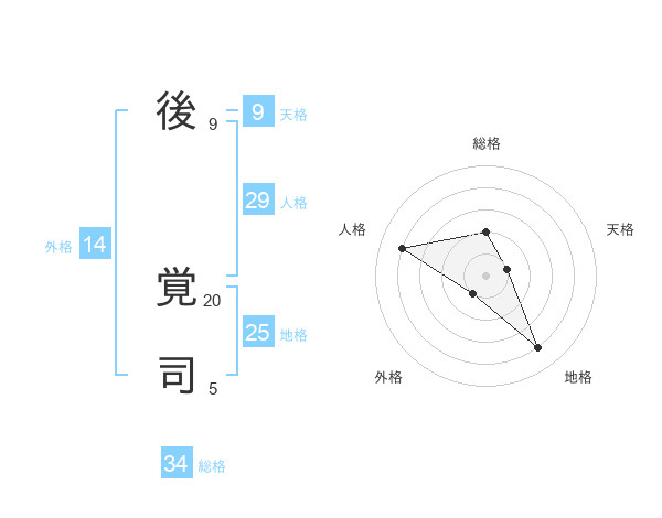 後 覚司さんの総格は34画の2点!