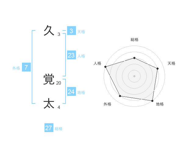 久 覚太さんの地格は24画の5点!
