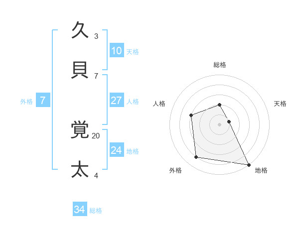 久貝 覚太さんを姓名の画数から五運を鑑定