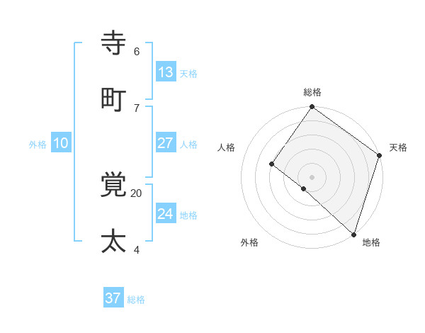寺町 覚太さんの総格は37画の5点!