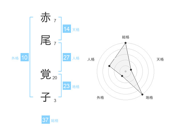 赤尾 覚子さんを姓名の画数から五運を鑑定