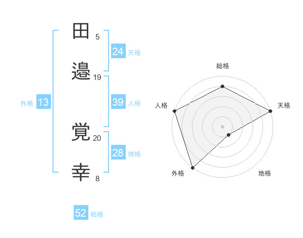 田邉 覚幸さんを姓名の画数から五運を鑑定