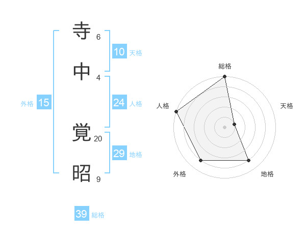 寺中 覚昭さんの総格は39画の5点!