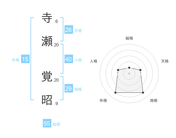 寺瀬 覚昭さんの総格は55画の1点!