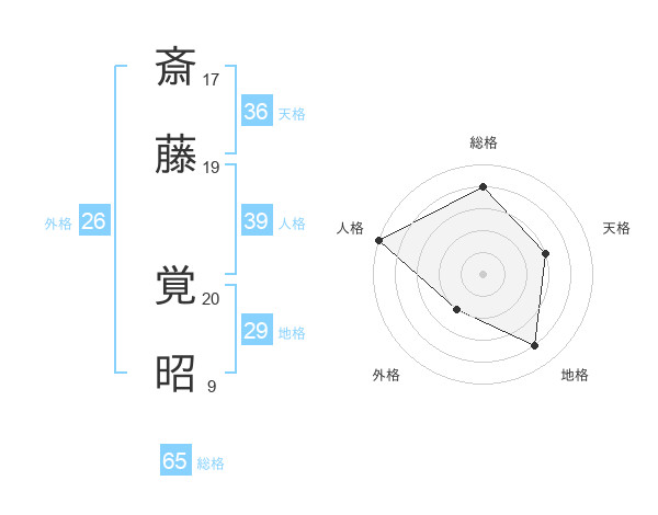 斎藤 覚昭さんを姓名の画数から五運を鑑定