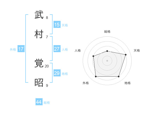 武村 覚昭さんの総格は44画の2点!