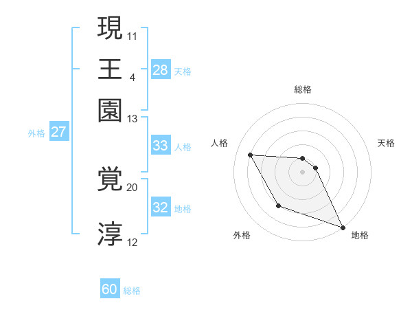 現王園 覚淳さんを姓名の画数から五運を鑑定