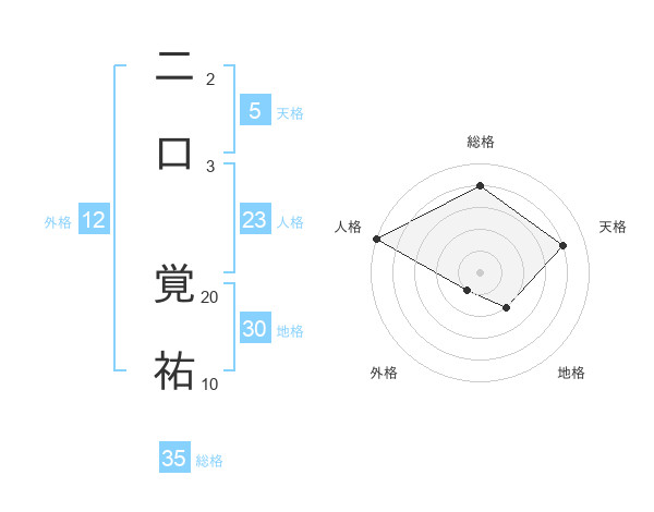 二口 覚祐さんの総格は35画の4点!