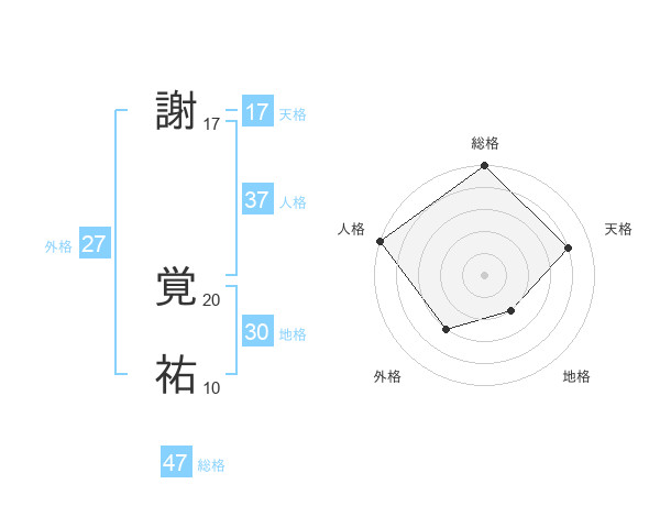 謝 覚祐さんの総格は47画の5点!