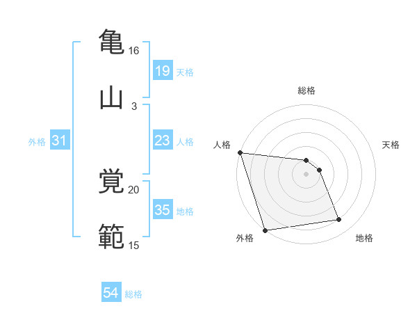 亀山 覚範さんの外格は31画の5点!