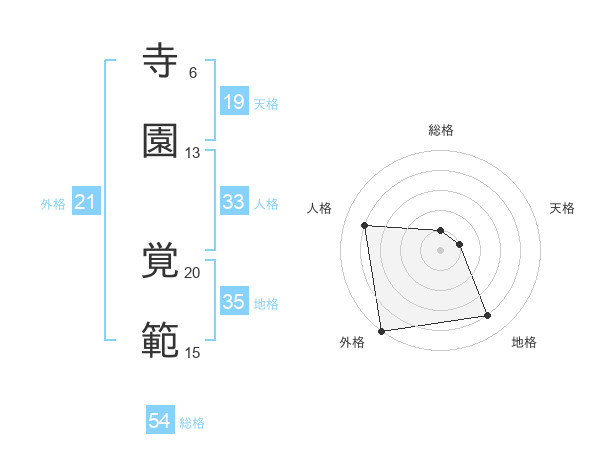 寺園 覚範さんの外格は21画の5点!