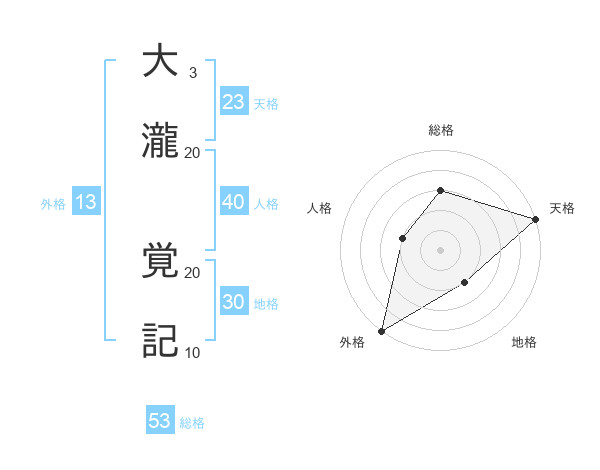 大瀧 覚記さんを姓名の画数から五運を鑑定
