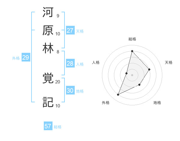 河原林 覚記さんの総格は57画の4点!