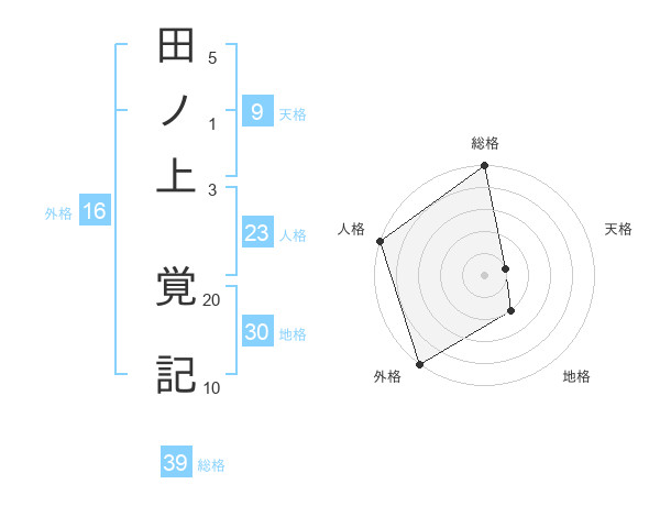 田ノ上 覚記さんを姓名の画数から五運を鑑定