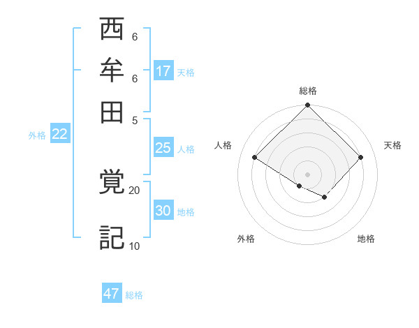 西牟田 覚記さんを姓名の画数から五運を鑑定