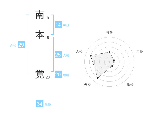 南本 覚さんの総格は34画の2点!