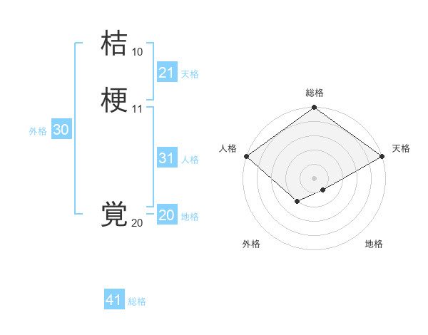 桔梗 覚さんの総格は41画の5点!