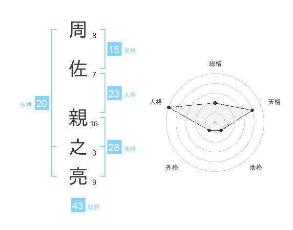 周佐 親之亮さんを姓名の画数から五運を鑑定