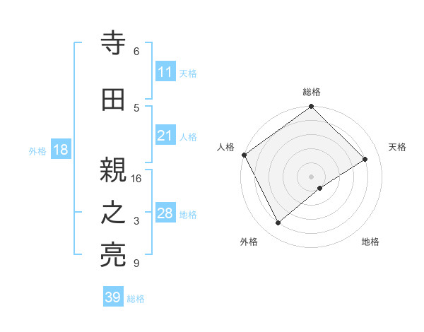 寺田 親之亮さんを姓名の画数から五運を鑑定