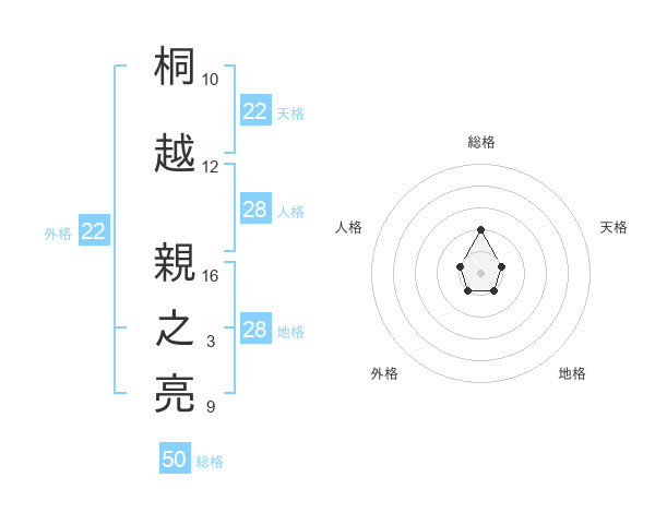 桐越 親之亮さんを姓名の画数から五運を鑑定
