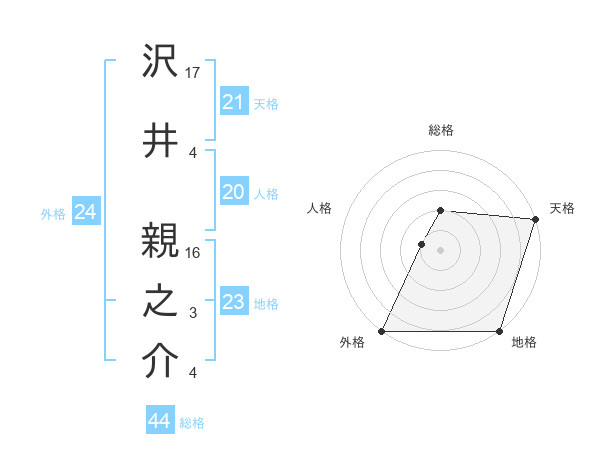 沢井 親之介さんの天格は21画の5点!