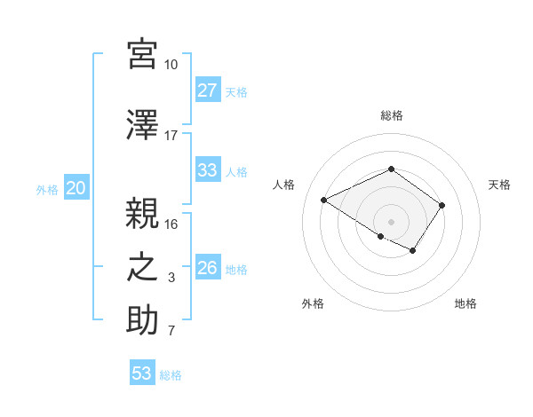 宮澤 親之助さんを姓名の画数から五運を鑑定