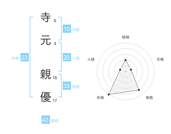 寺元 親優さんの総格は43画の2点!