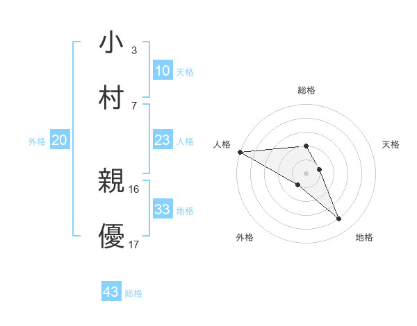小村 親優さんの総格は43画の2点!