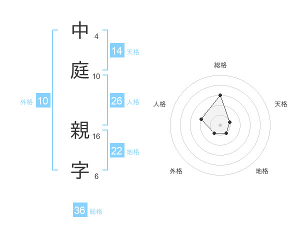 中庭 親字さんの外格は10画の1点!