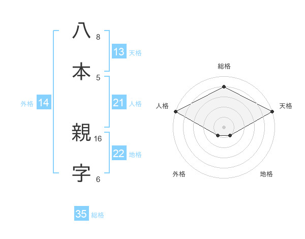 八本 親字さんの天格は13画の5点!