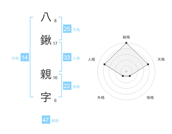 八鍬 親字さんの総格は47画の5点!