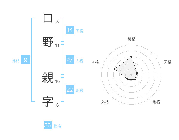 口野 親字さんの天格は14画の1点!